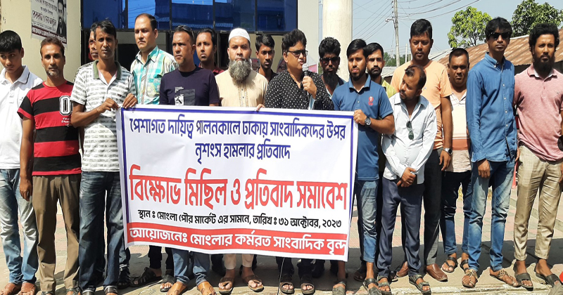 পেশাগত দায়িত্ব পালনকালে গত শনিবার (২৮ অক্টোবর) ঢাকায় সাংবাদিকদের ওপর হামলা ও এক সাংবাদিক নিহত হওয়ার ঘটনায় উদ্বেগ জানিয়ে মোংলায় বিক্ষোভ মিছিল ও প্রতিবাদ সমাবেশ হয়েছে।