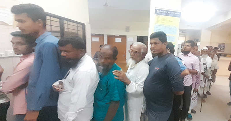 লাইনে দাঁড়িয়ে চিকিৎসা নিতে আসা শারমিন হাসান নামে শারীরিক প্রতিবন্ধী এক নারী বলেন, জন্ম থেকে পা-জোড়া চিকন ও বাঁকা। ২ঘন্টা থেকে লাইনে দাঁড়িয়ে আছি। খুব কষ্ট হচ্ছে। কখন যে ডাক্তার দেখাবো তা জানি না। গরীব মানুষ হাসপাতাল ছাড়া অন্য কোন উপায় নাই।পাশে লায়লা বেগম নামে আরেকজন বলেন,বাপু আর দাঁড়ায় থাকিবা পারিনা। কোমড়ে ব্যাথা,হাঁটুর ব্যাথা। এ বলে কেঁদে ফেলেন তিনি।