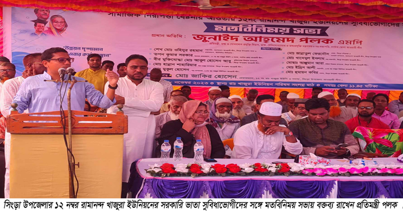 প্রতিমন্ত্রী আরও বলেন, ১৪ বছর আগে সিংড়ায় বিদ্যুৎ ছিল না, সার ছিল না। কোনো উন্নয়ন ছিল না। তারা ভোট পেত কিন্তু উন্নয়ন করতো না। পরবর্তীতে ২০০৯ সালে আমরা ক্ষমতায় আসি। আপনারা আমাকে নৌকায় ভোট দিয়েছেন বলে আজ আমি এমপি-মন্ত্রী হয়েছি। আমি আপনাদের চাকর, আপনাদের ট্যাক্সের টাকায় আমার বেতন হয়। আগামী দ্বাদশ নির্বাচনে আপনাদের মূল্যবান ভোট নৌকায় দিয়ে উন্নয়নের ধারা বজায় রাখুন। ১২ নম্বর রামানন্দ খাজুরা ইউনিয়ন পরিষদের ইউপি চেয়ারম্যান ও ইউনিয়ন আওয়ামী লীগের সভাপতি মো. জাকির হোসেন এর সভাপতিত্বে বিশেষ অতিথি হিসেবে বক্তব্যে রাখেন— সিংড়া উপজেলা আওয়ামী লীগের সভাপতি শেখ মো. ওহিদুর রহমান, উপজেলা আওয়ামী লীগের সাধারণ সম্পাদক মো. জান্নাতুল ফেরদৌস, সহ-সভাপতি মো. খাদেমুল ইসলাম, উপজেলা মুক্তিযোদ্ধা বিষয়ক সম্পাদক বীর মুক্তিযোদ্ধা মো. আবুল হোসেন আবু, রামানন্দ খাজুরা ইউনিয়ন পরিষদের সাবেক চেয়ারম্যান তপন কুমার সরকার প্রমুখ।