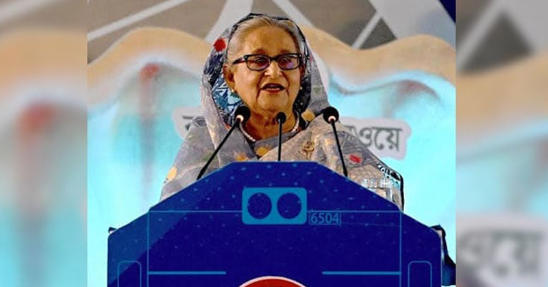তিনি বলেন, তাঁর সরকার ভারত সরকারের প্রধানমন্ত্রী নরেন্দ্র মোদীর সঙ্গে মিলে সম্প্রতি খুলনা থেকে মোংলা পোর্ট পর্যন্ত ব্রডগেজ রেল চলাচলের উদ্বোধন করেছে। যে লাইনটা এক সময় খালেদা জিয়া বন্ধ করে দিয়েছিল।