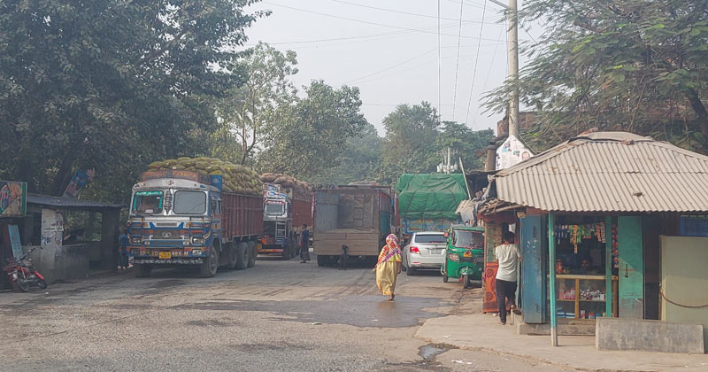 আলু ও পেঁয়াজ সহ বিভিন্ন পন্য নিয়ে ভারত থেকে আগের মতই আসছে ট্রাক। তবে আমদানী হওয়া এসব পন্য দেশের অভ্যান্তরে পরিবহনে গুনতে হচ্ছে বাড়তি ভাড়া।