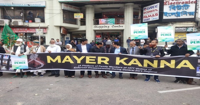 আন্তর্জাতিক মানবাধিকার দিবস উপলক্ষ্যে, সাবেক সেনাশাসক জিয়াউর রহমানের শিকার মুক্তিযোদ্ধা সেনা-অফিসারদের স্বজনদের সংগঠন "মায়ের কান্না" আজ রোববার (১০ ডিসেম্বর) বিকেলে এক প্রতিবাদী মানববন্ধনের আয়োজন করে।