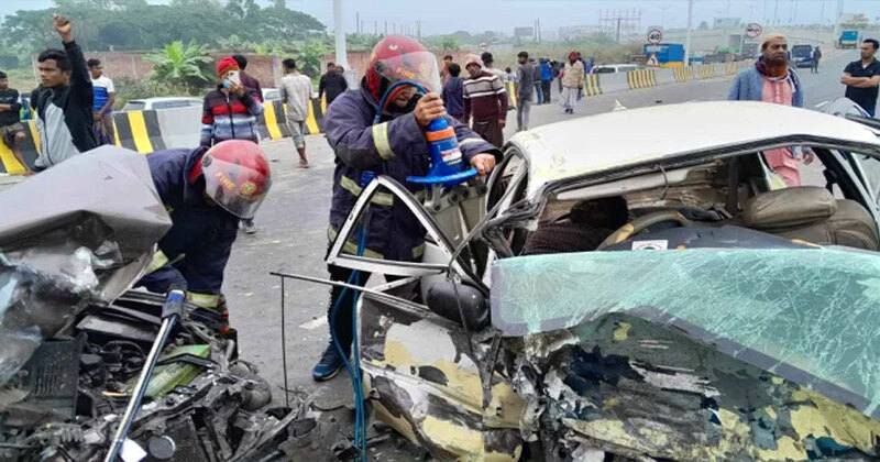 স্থানীয়দের বরাত দিয়ে পূর্বাচল ফায়ার সার্ভিসের স্টেশন অফিসার উদ্দিপন ভক্ত জানান, সকাল সাড়ে ৯টার দিকে বেপরোয়া গতিতে আসা কুড়িল বিশ্বরোডগামী একটি যাত্রীবাহী প্রাইভেটকার নিয়ন্ত্রণ হারায়। এ সময় গাড়িটি সড়কের একপাশ থেকে আরেক পাশে ছিটকে পড়ে। তখন কাঞ্চনগামী একটি প্রাইভেটকারের সঙ্গে ওই প্রাইভেটকারের মুখোমুখি সংঘর্ষ হয়।
