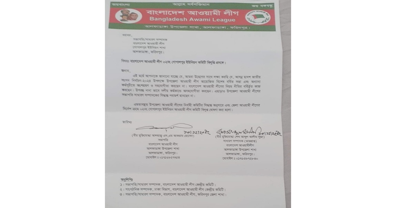 তবে দলের সাধারণ সম্পাদকের পরিস্কার বক্তব্য ও কেন্দ্রীয় নির্দেশনাকে বৃদ্ধাঙ্গুলি দেখিয়ে আলফাডাঙ্গা উপজেলা আওয়ামী লীগে তুঘলকি সিদ্ধান্ত নিলো। তারা এক নোটিশে বিলুপ্ত করেছে ফরিদপুরের আলফাডাঙ্গা উপজেলার গোপালপুর ইউনিয়ন কমিটি।