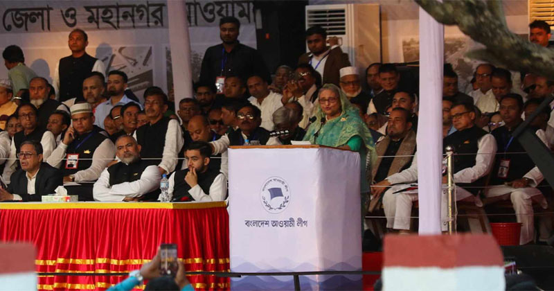 সকাল থেকে আলিয়া মাদ্রাসা মাঠে জড়ো হন আওয়ামী লীগ নেতাকর্মীরা। বেলা বাড়ার সঙ্গে সঙ্গে পুরো মাঠ কানায় কানায় পূর্ণ হয়ে যায়। হাতে লাল-সবুজ পতাকার সঙ্গে রঙিন পোশাক উৎসবের আমেজ তৈরি করে গোটা এলাকায়।