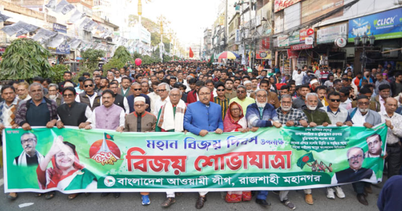 মহান বিজয় দিবস উপলক্ষ্যে কেন্দ্রীয় কর্মসূচির অংশ হিসেবে বুধবার (২০ ডিসেম্বর) বিকাল ৪টায় বাংলাদেশ আওয়ামী লীগ, রাজশাহী মহানগরের উদ্যোগে কুমারপাড়াস্থ দলীয় কার্যালয়ে সামনে থেকে বর্ণাঢ্য বিজয় শোভাযাত্রা বের করা হয়। বিজয় শোভাযাত্রা নগরীর বিভিন্ন সড়ক প্রদক্ষিণ শেষে সাহেব বাজার জিরো পয়েন্টে গিয়ে শেষ হয়। এরপর সেখানে সমাবেশ অনুষ্ঠিত হয়। সমাবেশে প্রধান অতিথির বক্তব্য রাখেন বাংলাদেশ আওয়ামী লীগের সভাপতিমণ্ডলীর সদস্য ও রাসিক মেয়র এএইচএম খায়রুজ্জামান লিটন।