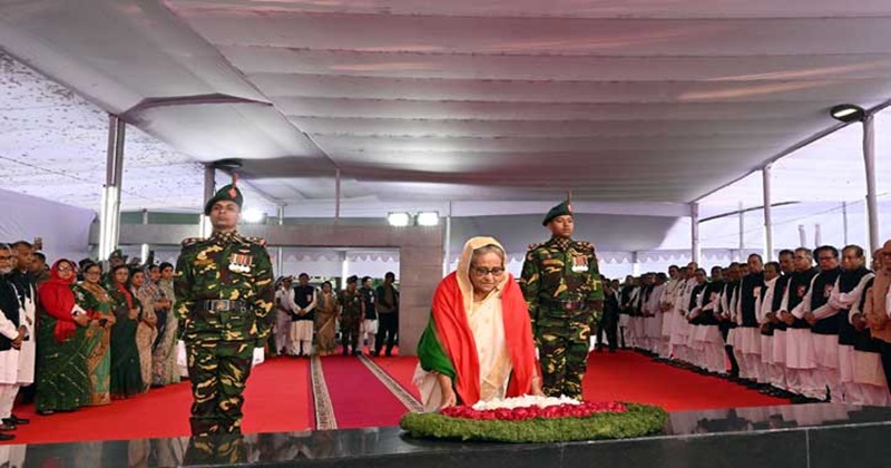 বৃহস্পতিবার (৭ মার্চ) সকাল ৭টা ১মিনিটে ধানমণ্ডি ৩২ নম্বরে বঙ্গবন্ধুর প্রতিকৃতিতে ফুল দিয়ে শ্রদ্ধা জানান তিনি। প্রথমে প্রধানমন্ত্রী হিসেবে, পরে দলের সিনিয়র নেতাদের নিয়ে আওয়ামী লীগের পক্ষে শ্রদ্ধা জানান শেখ হাসিনা। এ সময় কিছুক্ষণ নীরবে দাঁড়িয়ে থাকেন তিনি।