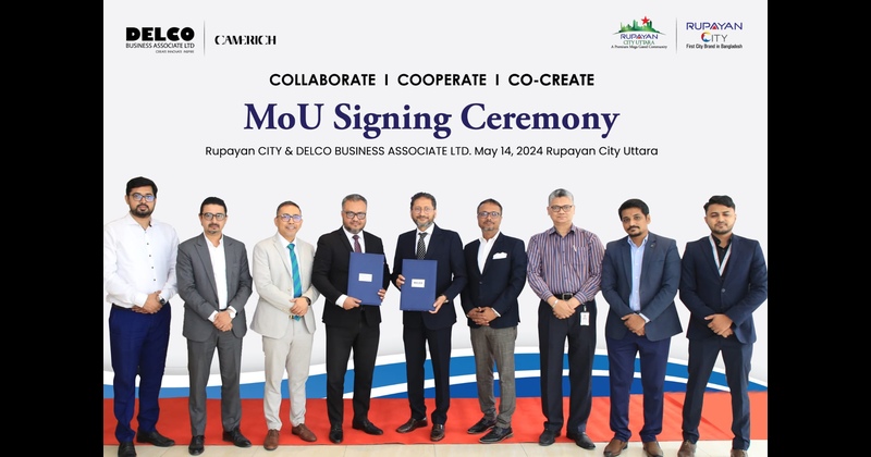 মঙ্গলবার দুপুরে এক আড়ম্বর পূর্ণ অনুষ্ঠানের মাধ্যমে দুপুরে রূপায়ণ সিটি সিইও এম মাহবুবুর রহমান এবং ডেলকো বিজনেস এসোসিয়েট লিমিটেড- এর সিইও আসিফ ইকবাল নিজ নিজ প্রতিষ্ঠানের পক্ষে 'MOU' চুক্তিটি স্বাক্ষর করেন।