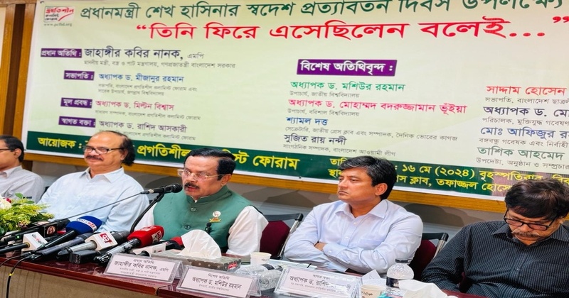 বৃহস্পতিবার (১৬ মে) জাতীয় প্রেস ক্লাবে এক সেমিনারে তিনি এসব কথা বলেন। প্রধানমন্ত্রী শেখ হাসিনার স্বদেশ প্রত্যাবর্তন দিবস উপলক্ষে সেমিনারটি আয়োজন করে বাংলাদেশ প্রগতিশীল কলামিস্ট ফোরাম।
