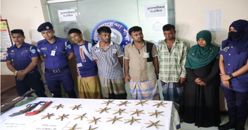 গ্রেপ্তার আসামিরা হলেন উখিয়ার মাদারবুনিয়া এলাকার মো. ছৈয়দের ছেলে মোস্তাক আহমদ (৪৩), মহেশখালীর মাঝের ডেইল এলাকার আনজু মিয়ার ছেলে রবিউল আলম (৩৪), মাদারবুনিয়া এলাকার মৃত নুর নবীর ছেলে কাশেম ওরফে মনিয়া (৩৫), মোস্তাক আহমদের মেয়ে লতিফা আক্তার (২৪) এবং মহেশখালীর নতুন বাজার এলাকার মৃত আবুল হাশেমের ছেলে বেল্লাল হোসেন (৪০)।